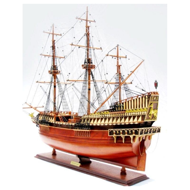90cm detailed model of Sir Francis Drake's famous ship, the Golden Hind. Fully assembled and ready for display.