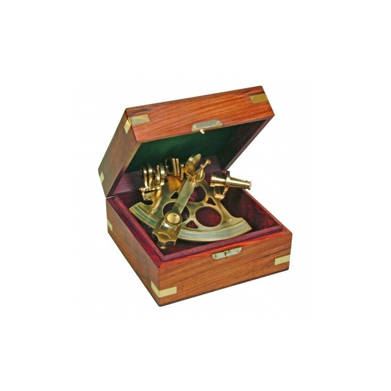 Functioning full size brass replica vernier sextant. Comes with brass bound storage/display case. Not suitable for detailed navigation.